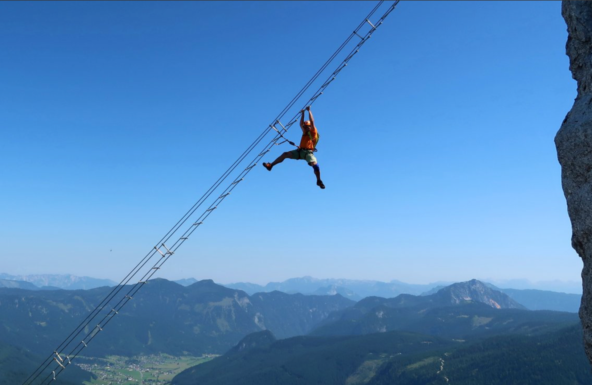 A když jsem již u Bad Ischlu, tak to sice není bůhví jak daleko, ale za rohem to také není. Je vždy fajn vyvážit intelektuální potravu s fyzickou zábavou. Když je řeč o Bad Ischlu, tak se mnohým, zvláště romantikům, jistě vybaví jméno Alžběty Bavorské zvané Sisi. Ačkoli mne kdysi jedna dáma nazvala nenapravitelným romantikem, zas až tolik postižený nejsem, a mě se spíše vybaví Katrina. Parádní kopec na Bad Ischlem, na který vede ferrata s neopakovatelnými výhledy, tuším že na šest, solnohradských jezer a z vrcholu na masiv Dachsteinu. Je to snadná začátečnická ferrata, kterou dcera slezla poprvé ve svých dvanácti letech. Byť, pozor na děti! Ony stále trochu postrádají pud sebezáchovy a rozhodně neznamená, že to co vylezou děti, dáte také. Navíc jejich tělo je většinou o poznání lehčí než to dospělé… Nicméně, Katrin klettersteig je opravdu jednoduchá ferrata a je to přesně ten typ, kde si to můžete zkusit. Buď vás to chytne, pokud lezete poprvé, a k tomu si užijete ty nádherné výhledy. Pokud nemáte závratě. S nimi to není dobrý nápad.