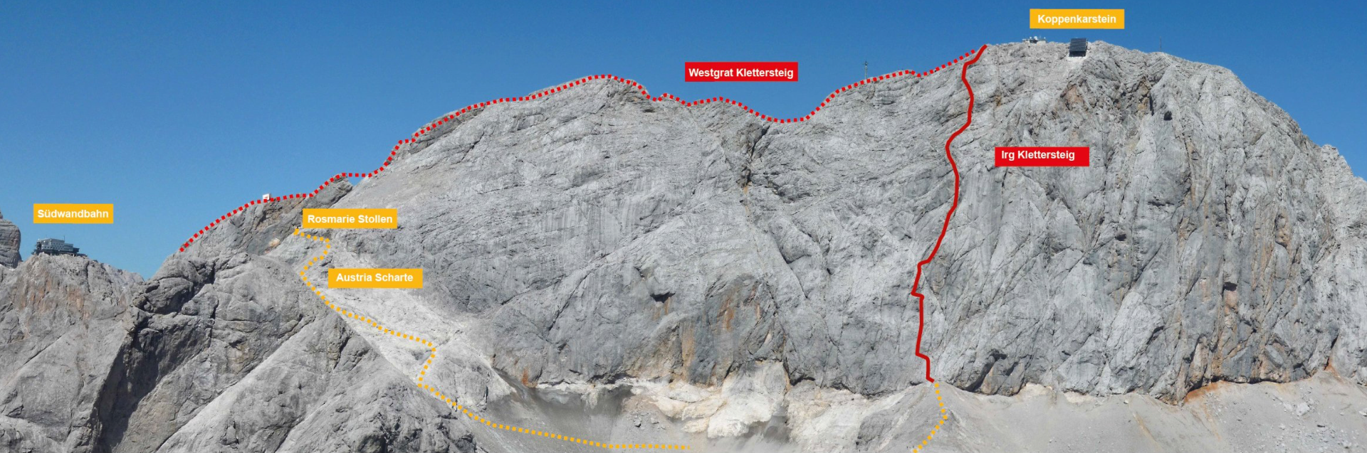 Ramsauer klettersteig je spíš exponovaná hřebenovka, než nějaké super lezení, ale o to ta ani moc nejde. Jde tu o ty "šéneausicht" do dáli. Více pod jednotlivými odkazy